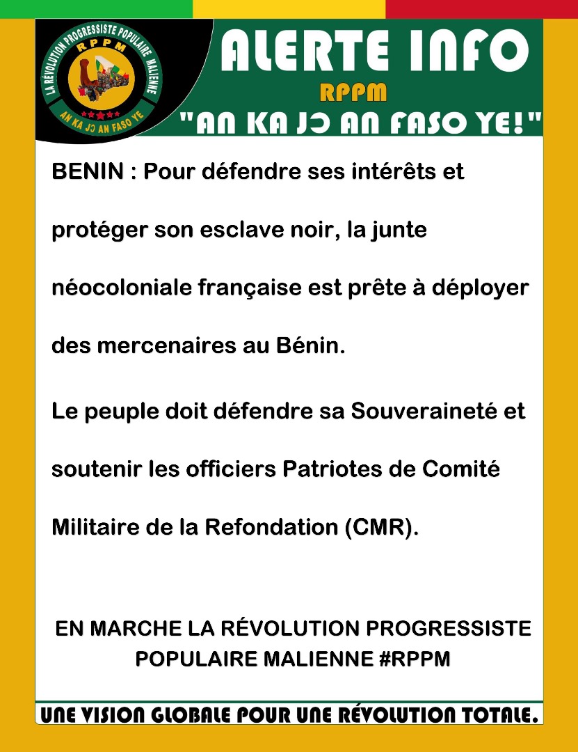 Accueil CDM Actu Alerte Info RPPM CDM Actu Alerte Info RPPM Par admin - 8 décembre 2025 33 0 Partager FacebookTwitterWhatsAppLinkedinTelegramCopy URL ARTICLES CONNEXESPLUS DE L'AUTEUR CDM Actu FEMAFOOT ! CDM Actu CONCERT VIRTUEL A BAMAKO : le CDM rend hommage aux Forces Armées malienne CDM Actu SPÉCIAL 20 JANVIER LAISSER UN COMMENTAIRE Annuler la réponse S'il vous plaît entrez votre commentaire! S'il vous plaît entrez votre nom ici Vous avez entré une adresse email incorrecte! Veuillez entrer votre adresse email ici Enregistrer mon nom, email et site web dans ce navigateur pour la prochaine fois que je commenterai. 0FansJ'aime0SuiveursSuivre22,800AbonnésS'abonnerDon't Miss CELEBRATION DU 14 JANVIER 2025,SOUVERAINETÉ RETROUVÉEAU CDM Actu admin - 12 janvier 2026 14 janvier 2022 – 14 janvier 2026 ! CDM Actu admin - 8 janvier 2026 L’HIVER NOIR ARRIVE…On ne peut pas vaincre l’impérialisme dans son propre jeu. CDM Actu admin - 13 janvier 2026 LE PM , LE GÉNÉRAL DE CORP D’ARMÉE, ABDOULAYE MAÏGA CDM Actu admin - 9 janvier 2026 Voir plus