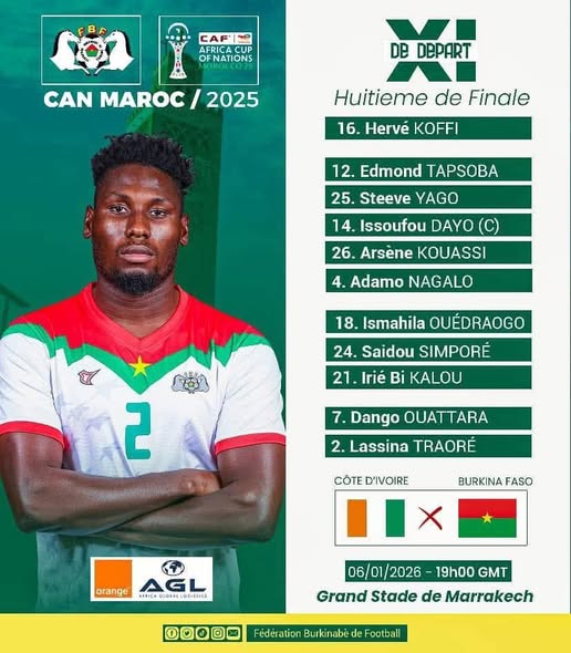 Accueil Sport Sport [#CAN_MAROC2025] Par admin - 6 janvier 2026 18 0 Partager FacebookTwitterWhatsAppLinkedinTelegramCopy URL Le 11 de départ de Brama Traoré contre la Côte d’Ivoire. #com_fbf#AFCON2025#burkinafaso Source/#FasoVoxpress ARTICLES CONNEXESPLUS DE L'AUTEUR Sport CAN 2025 : lourdes sanctions de la CAF contre l’Algérie CDM Actu DÉCLARATION DE PRESSE Sport Le Sénégal sur le toit de l’Afrique pour la 2e fois LAISSER UN COMMENTAIRE Annuler la réponse S'il vous plaît entrez votre commentaire! S'il vous plaît entrez votre nom ici Vous avez entré une adresse email incorrecte! Veuillez entrer votre adresse email ici Enregistrer mon nom, email et site web dans ce navigateur pour la prochaine fois que je commenterai. 0FansJ'aime0SuiveursSuivre22,800AbonnésS'abonnerDon't Miss « Construire une armée digne de ce nom »: Assimi Goïta s’adresse aux jeunes officiers de... Fama Kibaru admin - 1 décembre 2025 REGION DE SEGOU : Lancement officiel des opérations de DDRI Fama Kibaru admin - 1 décembre 2025 Mali-Guinée : À Conakry, le Général Assimi GOÏTA célèbre « deux poumons dans un... Politique admin - 19 janvier 2026 Sortie de crise entre Barrick gold et l’état : Et après ? Economie admin - 2 décembre 2025 Voir plus