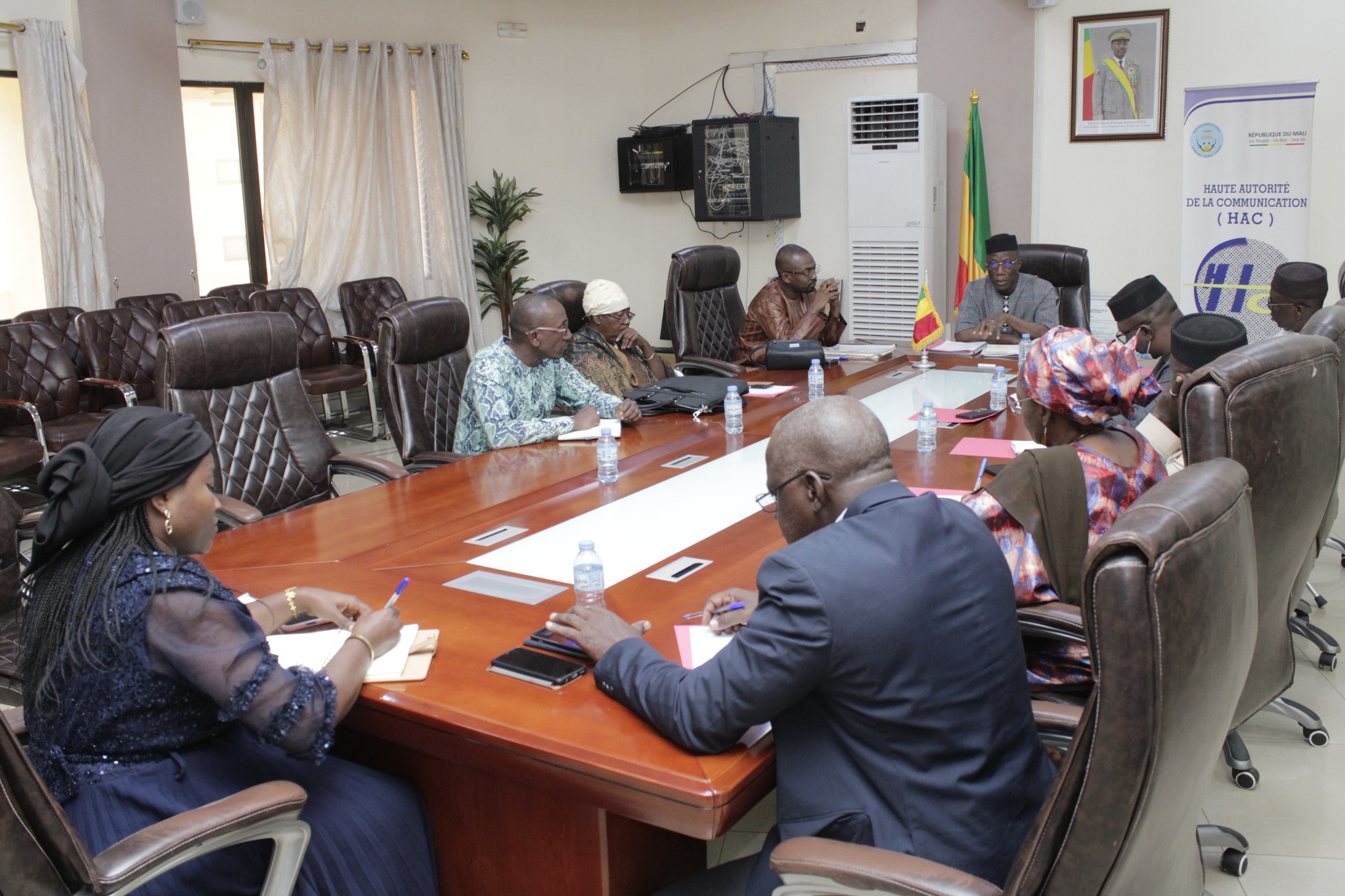 La Salle de délibération de la Haute Autorité de la Communication (HAC) a accueilli ce mercredi 10 décembre 2025 une séance de travail majeure entre les membres de l’institution, menés par son Président, Gaoussou Coulibaly, et le Procureur en charge du Pôle Anti-Cybercriminalité, Dr Adama Coulibaly.L’objectif de cette rencontre était d’explorer les pistes de collaboration entre les deux entités, dont les missions se révèlent complémentaires dans le contexte médiatique actuel.Nécessité d’une synergie de sanctions