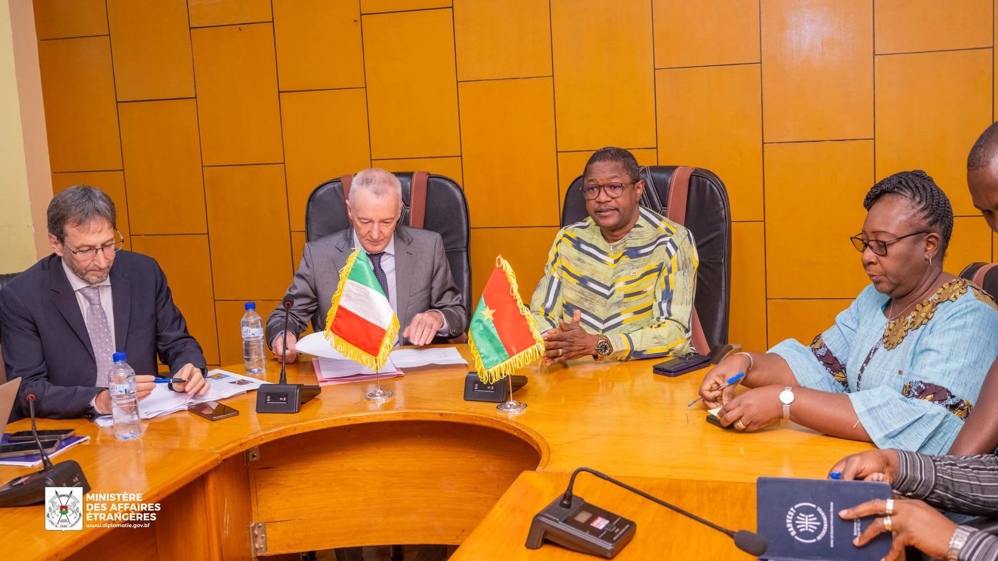 Pour conclure, le Ministre a formulé un plaidoyer pour le renforcement des liens consulaires. Il a ainsi souhaité l’ouverture prochaine d’un bureau consulaire italien à Ouagadougou. Une telle structure permettrait de faciliter les procédures de mobilité pour les acteurs économiques, dynamiser les échanges commerciaux entre les deux nations et rapprocher les secteurs privés burkinabè et italien.