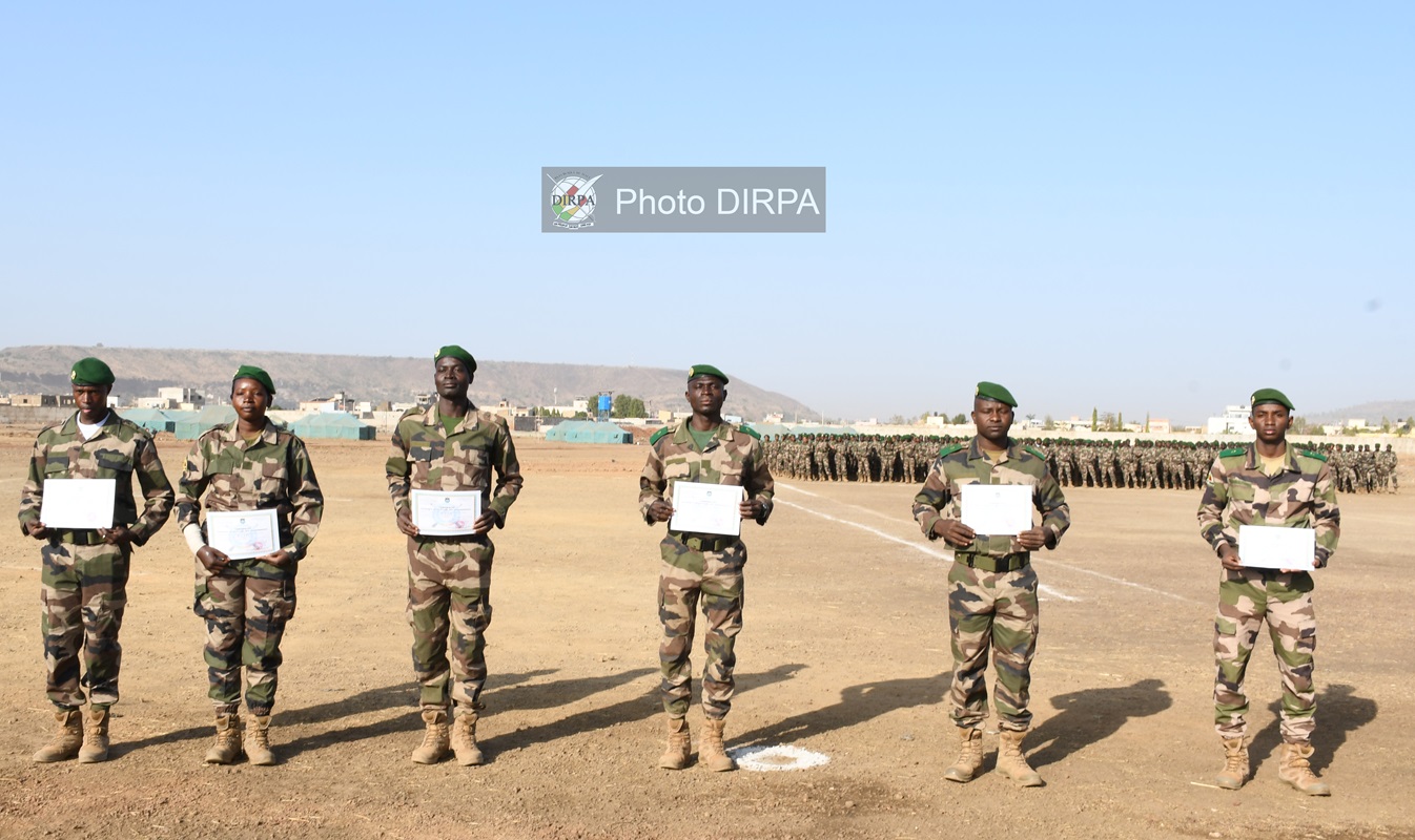 Cette formation, commencé le 1er octobre 2025, a regroupé plus de 500 recrues. Elle s’est déroulée en deux phases : une phase militaire et une phase technique. Selon le Sous-lieutenant Nouman COULIBALY, directeur de la formation, la première phase a été consacrée à l’Instruction Sur le Tir au Combat, la Tactique, l’Armement, les épreuves physiques et l’Ecole du soldat et la phase deuxième quant à elle, a été consacrée aux techniques et connaissances nécessaires pour être un bon aide opérateur radio des transmissions. A l’issue des évaluations de sortie, concernant la DTTIA, le Soldat de 2ème Classe Sébou DIABATE s’est classé premier avec une moyenne de 16,82/20. Le Soldat de 2ème Classe Issa DEMBELÉ quant à lui est arrivé deuxième. Le troisième est le Soldat de 2ème Classe Agaly DICKO.