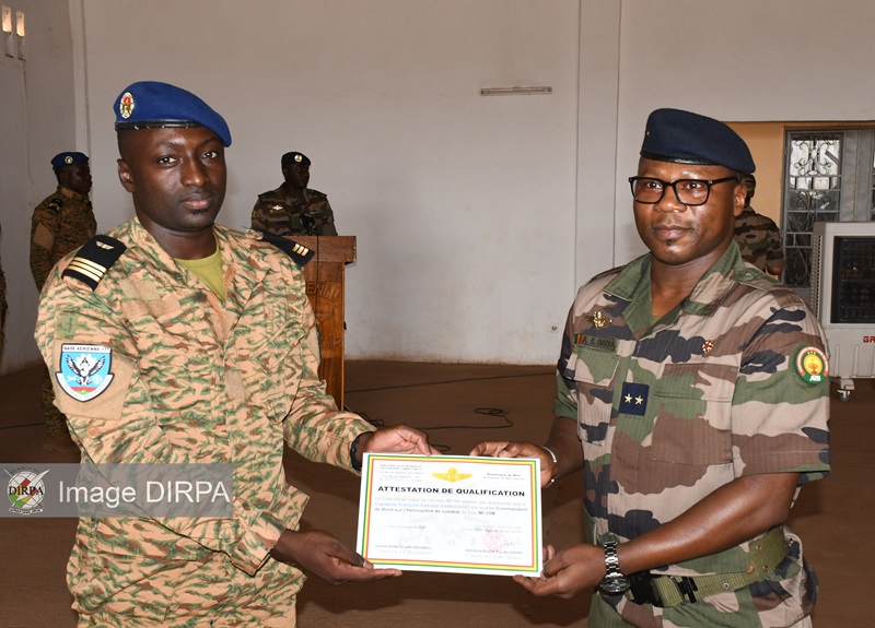 Durant quatre mois de formation, ces aviateurs, composés d’officiers et de sous-officiers, dont deux Maliens, ont été formés aux techniques de pilotage et de maintenance de l’hélicoptère de combat Mi-35, mis à disposition par la république sœur du Burkina Faso. L’encadrement a été assuré par des instructeurs maliens. Cette initiative s’inscrit dans le cadre de la coopération étroite entre les pays de l’Alliance des États du Sahel (AES), en vue de renforcer l’efficacité d’une défense nationale commune.