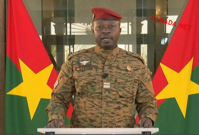 (FILES) In this file grab of a handout video released by Radiodiffusion Télévision du Burkina" on January 27, 2022 the leader of Burkina Faso's new military junta Paul-Henri Sandaogo Damiba speaks during a televised address, three days after the overthrow of Burkina Faso's president. Damiba has been declared President by the Constitutional Council, AFP reports on February 10, 2022. - RESTRICTED TO EDITORIAL USE - MANDATORY CREDIT "AFP PHOTO /Radiodiffusion Télévision du Burkina" - NO MARKETING - NO ADVERTISING CAMPAIGNS - DISTRIBUTED AS A SERVICE TO CLIENTS (Photo by RADIODIFFUSION TéLéVISION DU BURKINA / AFP) / RESTRICTED TO EDITORIAL USE - MANDATORY CREDIT "AFP PHOTO /Radiodiffusion Télévision du Burkina" - NO MARKETING - NO ADVERTISING CAMPAIGNS - DISTRIBUTED AS A SERVICE TO CLIENTS