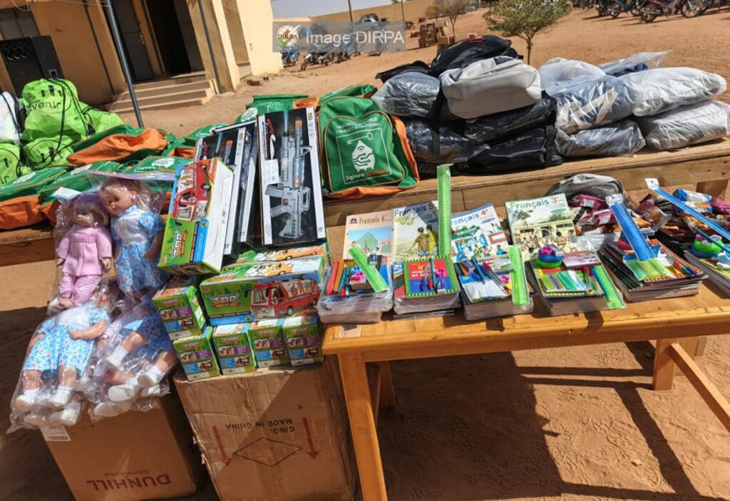 À l’occasion de la commémoration du 20 ème anniversaire de la création de son établissement, la promotrice du jardin d’enfants « La Couronne de Sonny » de GAO, Mme Maïga Kadidia Oumar Maïga, a fait parler son cœur en offrant 100 Kits scolaires et de nombreux jouets à 100 orphelins de militaires.