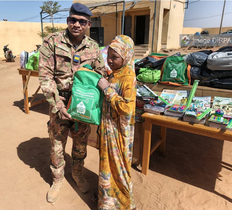 À l’occasion de la commémoration du 20 ème anniversaire de la création de son établissement, la promotrice du jardin d’enfants « La Couronne de Sonny » de GAO, Mme Maïga Kadidia Oumar Maïga, a fait parler son cœur en offrant 100 Kits scolaires et de nombreux jouets à 100 orphelins de militaires.