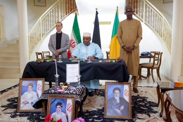 Le Premier ministre, Chef du Gouvernement le Général de Division Abdoulaye MAIGA, a présenté, ce jeudi 05 mars 2026, au nom du Président de la Transition, Chef de l’Etat, les condoléances attristées du gouvernement malien au peuple iranien au lendemain de la mort du Guide suprême iranien l’Ayatollah Ali Khamenei. C’est à travers la signature du livre de condoléances ouvert à l’Ambassade de la République Islamique d’Iran au Mali. Selon, le Premier ministre, le Guide iranien est « mort en martyr en défendant jusqu’à son dernier souffle l’intérêt supérieur de l’Etat et du peuple iranien ».