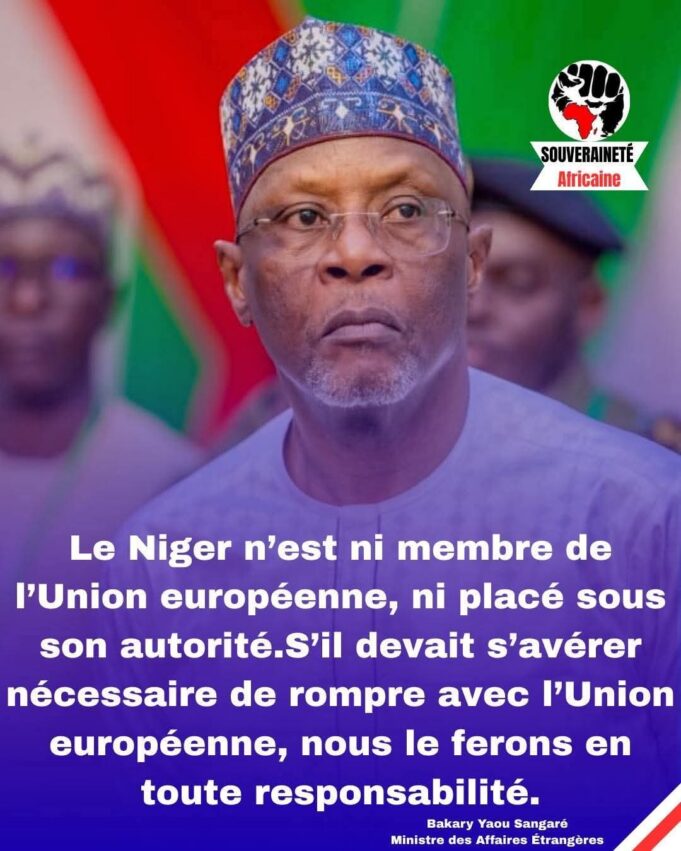 Le Niger n’est ni membre de l’Union européenne ni soumis à son autorité ; si une rupture avec l’Union européenne devait s’avérer nécessaire, nous l’assumerions pleinement et en toute responsabilité. — Bakary Yaou Sangaré, Ministre des Affaires étrangères