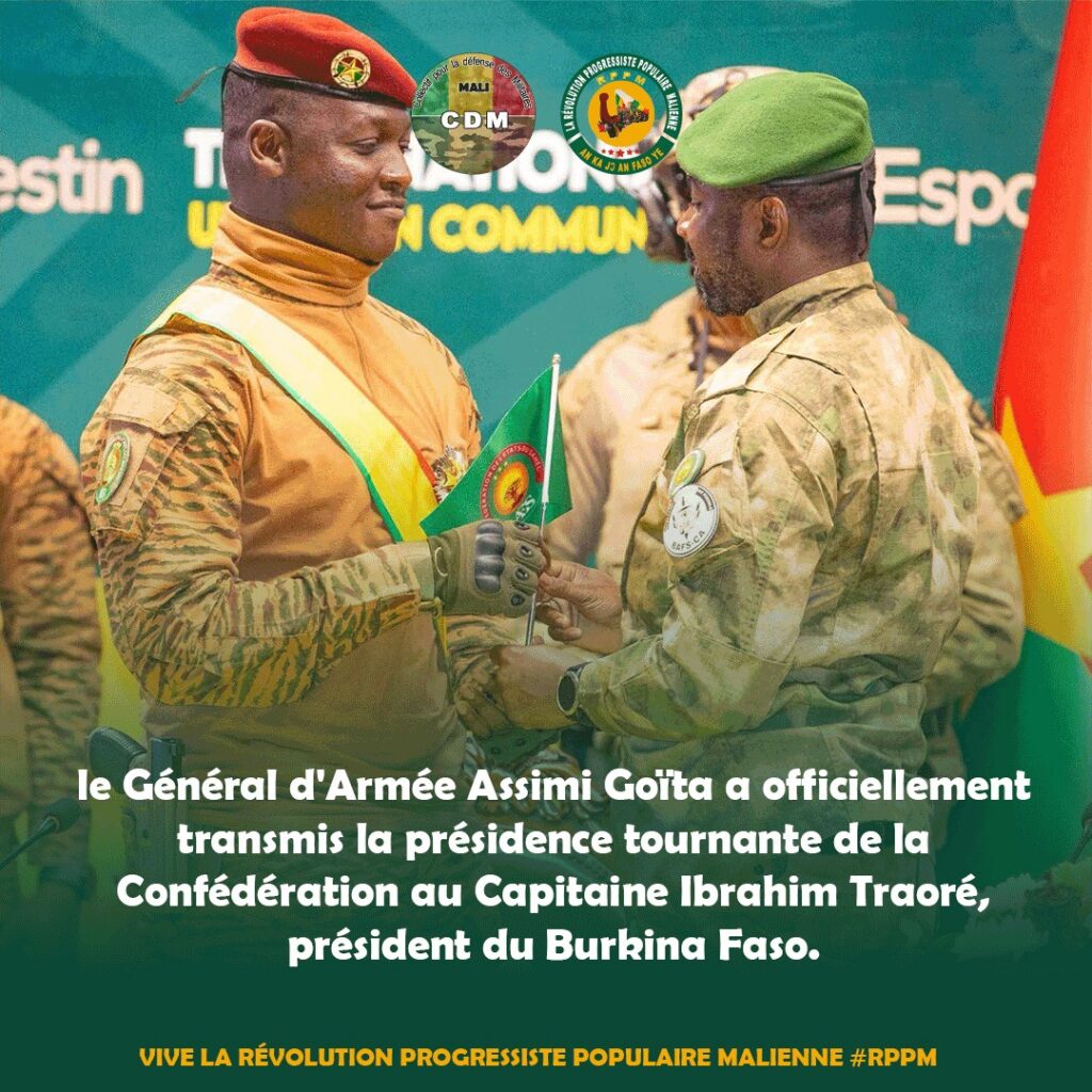Le CDM félicite et adresse ses vœux de plein succès au mandat du Camarade Capitaine Ibrahim TRAORÉ, Président du Faso et exprime sa solidarité fraternelle à l’ensemble du peuple burkinabè, ainsi qu’à tous les peuples de la Confédération des États du Sahel (AES), unis par une même aspiration à la souveraineté, à la dignité et au progrès partagé.