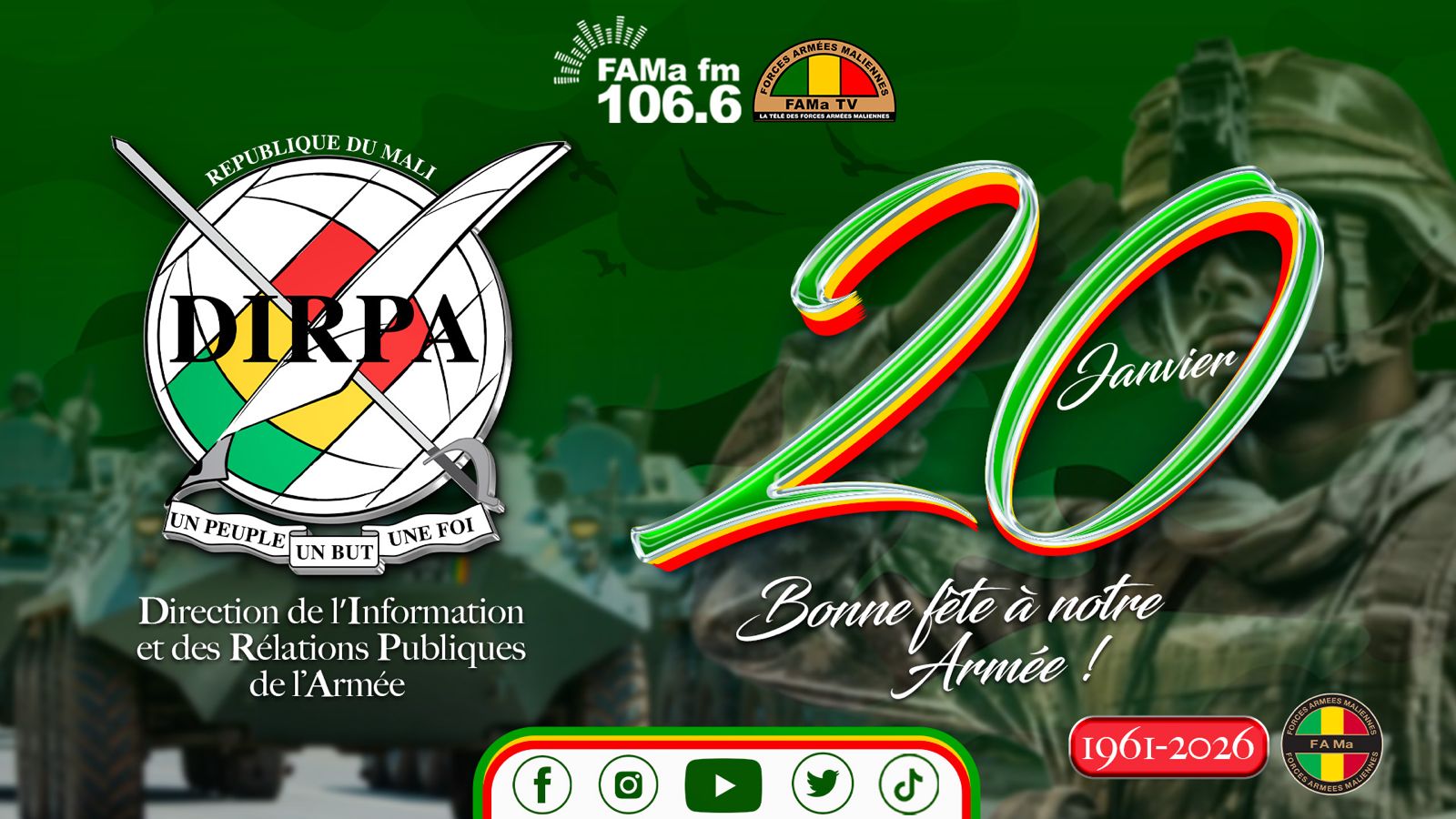Accueil Fama Kibaru Notre outil de défense a 65 ans. Fama Kibaru Notre outil de défense a 65 ans. Par admin - 20 janvier 2026 9 0 Partager FacebookTwitterWhatsAppLinkedinTelegramCopy URL 65 ans au service de la défense de la patrie Bonne fête aux forces armées Maliennes Source/FAMa.ml ARTICLES CONNEXESPLUS DE L'AUTEUR Fama Kibaru Mission de sécurisation : le Secteur 3 intensifie ses opérations Fama Kibaru FIN DE FORMATION POUR LE CONTINGENT 2023 CDM Actu CONCERT VIRTUEL A BAMAKO : le CDM rend hommage aux Forces Armées malienne LAISSER UN COMMENTAIRE Annuler la réponse S'il vous plaît entrez votre commentaire! S'il vous plaît entrez votre nom ici Vous avez entré une adresse email incorrecte! Veuillez entrer votre adresse email ici Enregistrer mon nom, email et site web dans ce navigateur pour la prochaine fois que je commenterai. 0FansJ'aime0SuiveursSuivre22,800AbonnésS'abonnerDon't Miss Kidal : Lancement du processus de la stratégie nationale de stabilisation et de la... Fama Kibaru admin - 9 décembre 2025 LA COALITION EXISTE, IL Y A LONGTEMPS. IL RESTAIT SEULEMENT DE CONNAÎTRE LES VISAGES... CDM Actu admin - 5 décembre 2025 OUI, ce qui se passe au Bénin nous concerne. CDM Actu admin - 8 décembre 2025 RAVITAILLEMENT SOUS HAUTE SURVEILLANCE : Les FAMa bravent le danger pour acheminer une soixantaine... Fama Kibaru admin - 10 décembre 2025 Voir plus
