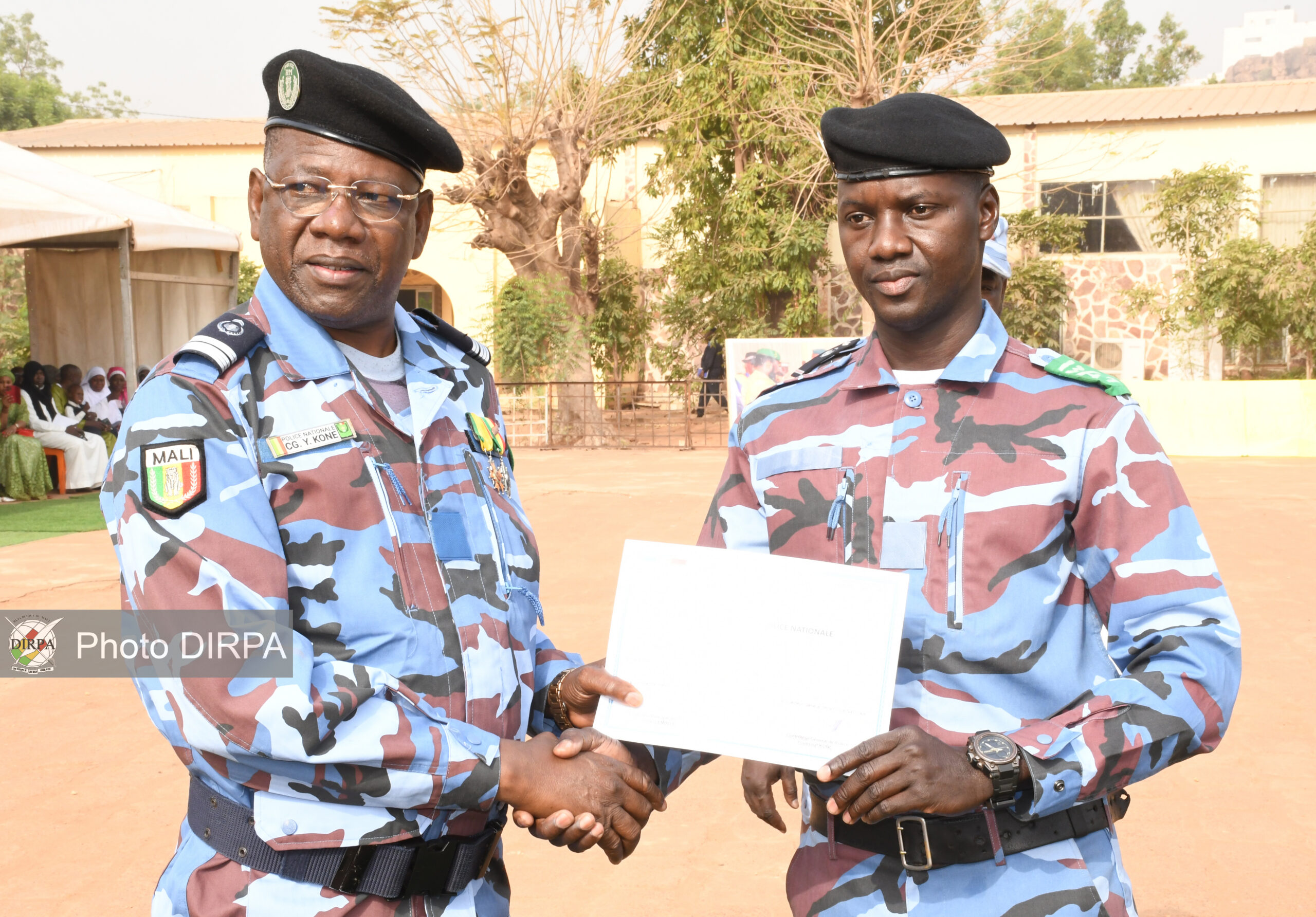 Le Directeur Général de la Police Nationale du Mali, le Contrôleur Général de police Youssouf KONE, a quant à lui, souligné que le Brevet d’Armes constitue une qualification prestigieuse, attestant la maîtrise technique et tactique supérieure d’un sous-officier dans une spécialité donnée. Il a également salué le professionnalisme de l’encadrement, composé d’enseignants civils et d’instructeurs militaires. S’adressant aux stagiaires, le Directeur Général de la Police Nationale du Mali a déclaré : « Vous appartenez désormais à une génération de policiers militaires appelée à évoluer sur des théâtres d’opérations souvent complexes. Vos aptitudes à évaluer la menace, à adapter vos dispositifs et à mener vos missions avec discernement et efficacité seront pleinement attendues. »