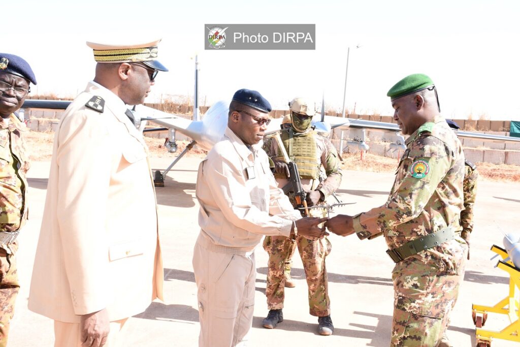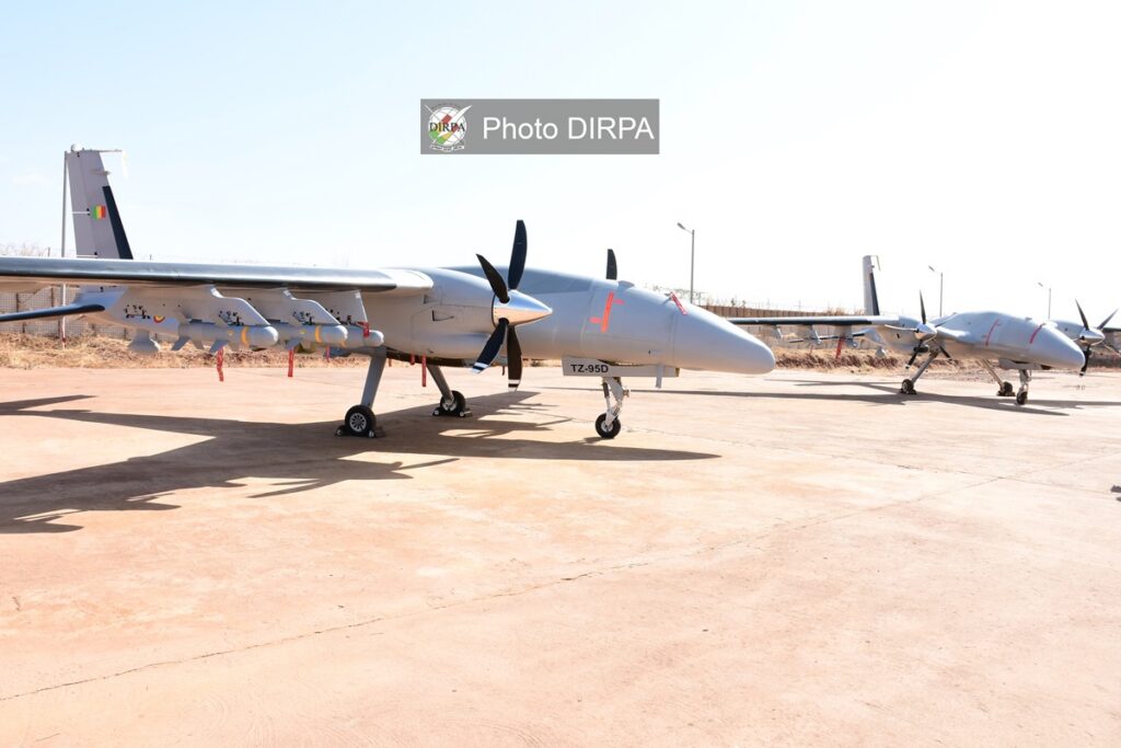 Cette acquisition reflète la volonté des autorités maliennes de doter l’Armée de l’Air de moyens de dernière génération, parfaitement adaptés aux défis opérationnels du terrain. Dans son allocution, le Ministre de la Défense a dressé un tableau sans complaisance du contexte sécuritaire régional, soulignant que le Sahel est confronté à une évolution complexe des menaces. Il a fait remarquer que les conflits hybrides se multiplient, mêlant guerre conventionnelle, tactiques asymétriques, guerre informationnelle et sabotage des infrastructures économiques. Face à cette réalité, le Général de Corps d’Armée Sadio Camara a rappelé que les Forces Armées Maliennes poursuivent leur transformation et leur adaptation permanente pour anticiper les menaces et maintenir la supériorité sur l’ennemi. Il a également souligné que la montée en puissance des FAMa, sous l’impulsion du Président de la Transition, constitue un axe majeur de l’action de l’État et figure parmi les priorités de la Défense nationale. Selon le ministre de la défense, la supériorité opérationnelle des FAMa se consolide inéluctablement grâce à l’acquisition continue d’équipements modernes et performants, fruit d’une coopération gagnant-gagnant avec des partenaires sincère du Mali. La remise de ces drones AKINCI, a-t-il précisé, s’inscrit dans cette dynamique et constitue un nouveau pas vers une armée plus moderne, autonome et efficace dans la lutte contre le terrorisme. Tout en insistant sur les performances de ces drones et le professionnalisme de leurs opérateurs, le Ministre de la défense a lancé un appel solennel aux combattants égarés à déposer les armes et à réintégrer la République ; car dit-il les irréductibles seront neutralisés par la puissance de feu et la détermination des FAMa. Le Ministre de la Défense a tenu à rappeler que les succès enregistrés sur le terrain résultent du soutien indéfectible du peuple malien, de l’engagement de nos vaillants FAMa et de la coordination étroite avec les pays frères de la Confédération des États du Sahel (AES), unis au sein d’une force conjointe qui mets en échec les plans de l’ennemi. Le Général de Corps d’Armée Sadio Camara a par ailleurs félicité et encouragé tous les militaires engagés sur les théâtres d’opérations et adressé ses vœux de prompt rétablissement aux blessés. Il a saisi l’occasion pour adresser une pensée particulière et rendre un hommage, au nom de toute la nation, aux otages civiles et militaires, réaffirmant que l’unité nationale demeure la clé de la victoire : « Unis, nous vaincrons ». Ces nouveaux aéronefs ultramodernes viennent renforcer de manière significative les capacités opérationnelles, de surveillance et de renseignement des Forces de Défense et de Sécurité de notre pays.