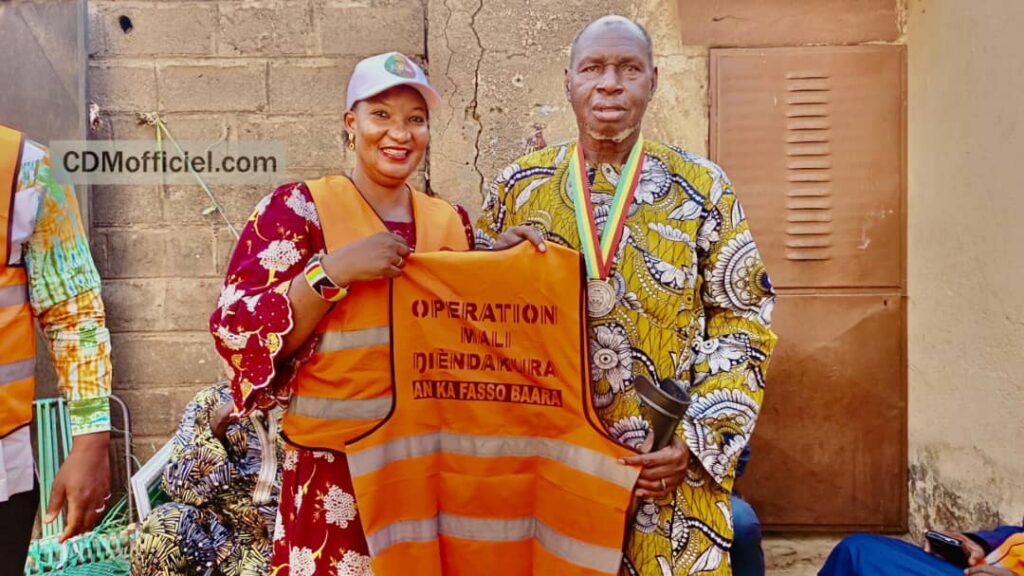 En reconnaissance de son leadership, M. Moctar Traoré a été désigné Ambassadeur de l’Opération Mali ƝƐdakùra. À cette occasion, l’effigie du projet citoyen lui a été remise, ainsi que des gilets symboliques destinés aux neuf Chefs de quartier, marquant leur engagement à être des relais actifs de cette dynamique sur le terrain.